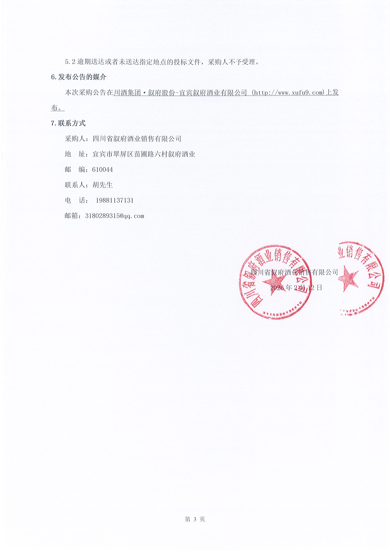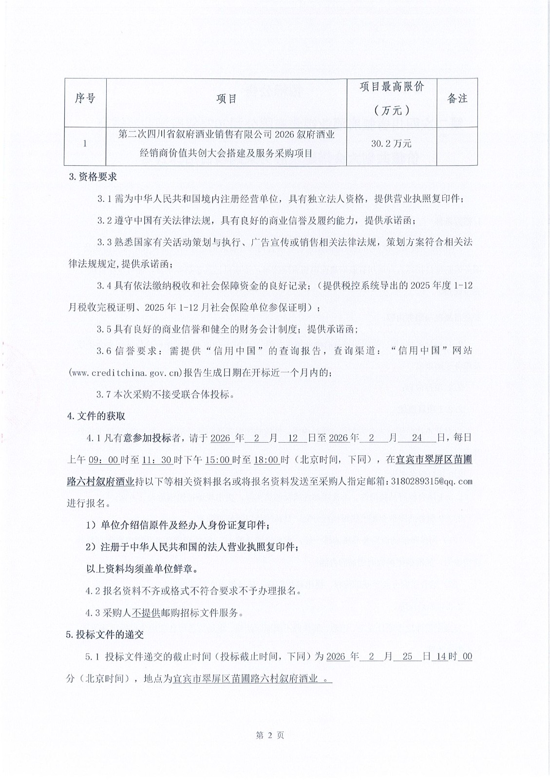 第二次四川省叙府酒业销售有限公司2026叙府酒业经销商价值共创大会搭建及服务采购项目竞争谈判招标公告